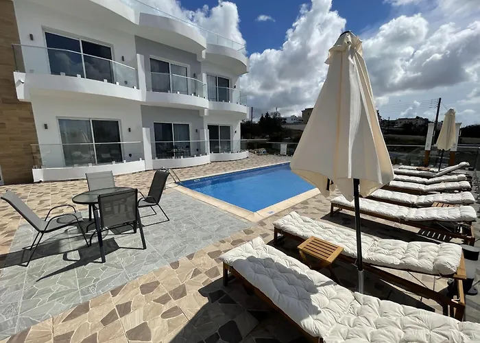 يمكن الوصول إلى متروبوليس بافوس في غضون 10 دقائق بالسيارة، في حين يبعد مطار بافوس الدولي مسافة 25 كم. وتقع هذه الشقة المكونة من 9 غرفة على بعد 15 دقائق بالسيارة عن ميناء بافوس.
